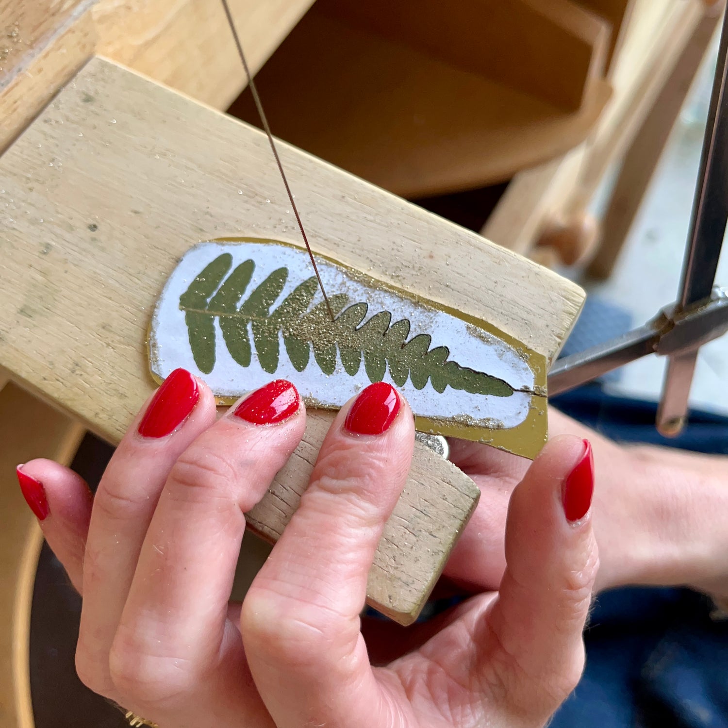 Des feuilles cueillies dans la nature, préservées puis sculptées dans le métal.
