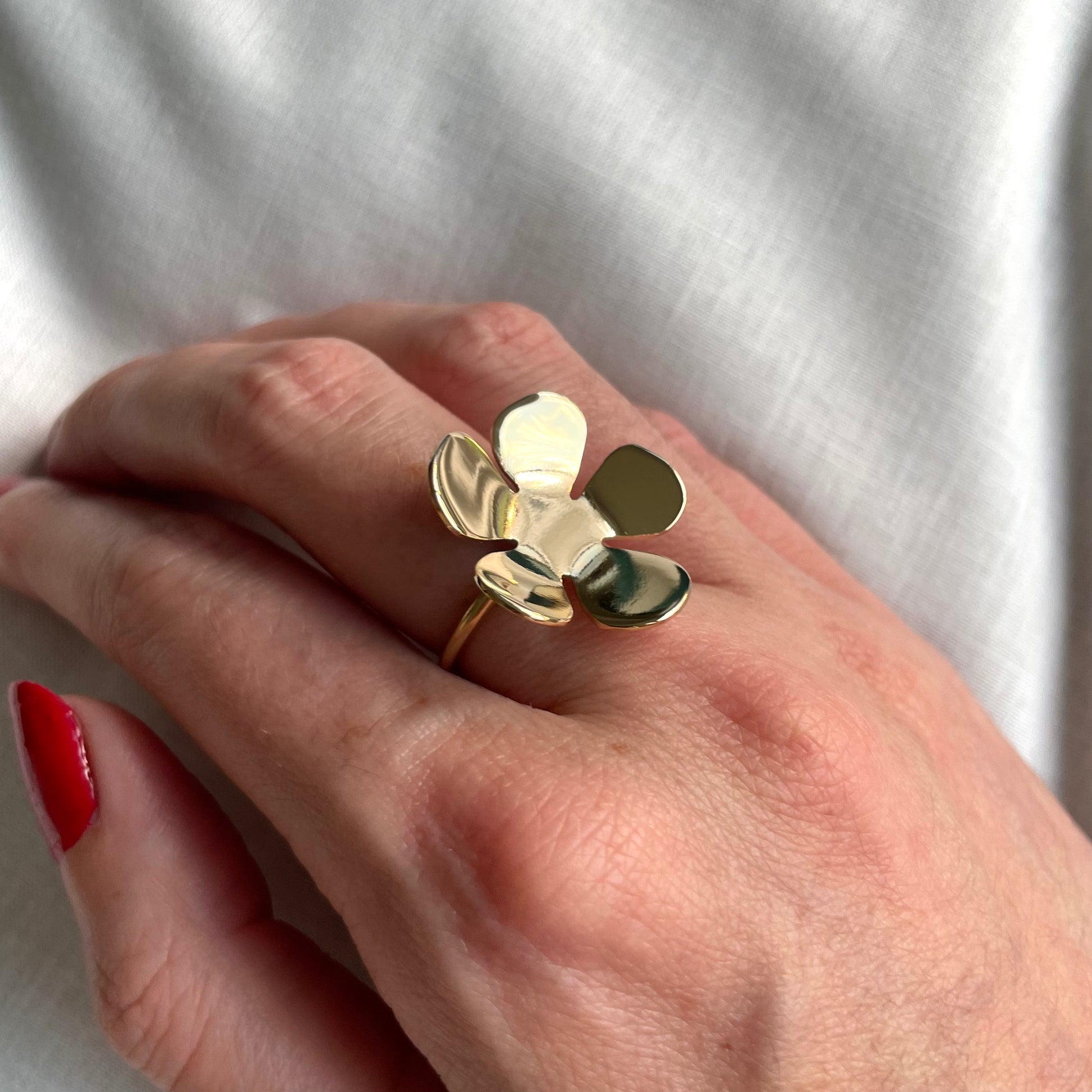 Gaïa est une bague sculptée à partir d'un grand bouton d’or, une pièce toute en lumière et en rondeur. Son design poétique et généreux fait rayonner la beauté simple mais profonde de la nature.