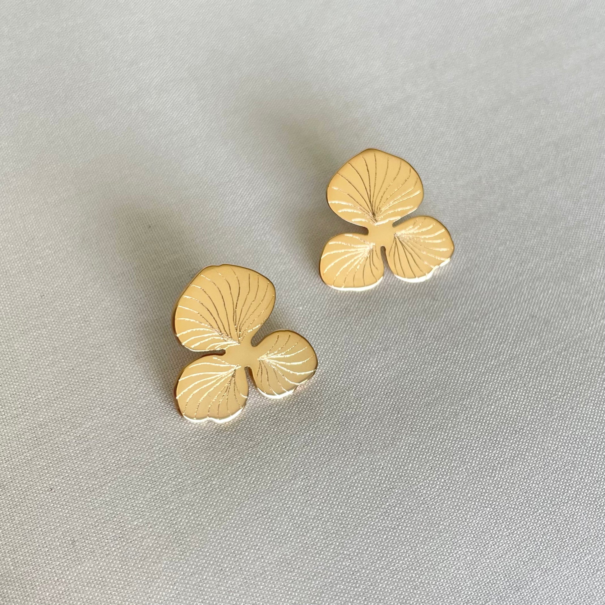 Les boucles Nova capturent l’essence même de la simplicité et de l’élégance. Façonnées à partir d’une petite fleur d’hortensia à trois pétales, elles sont gravées à la main de lignes subtiles et organiques.